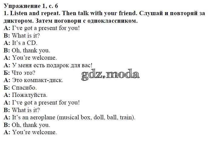 ОТВЕТ на задание № страница 6 Учебник по Английскому языку 4 класс Быкова Spotlight