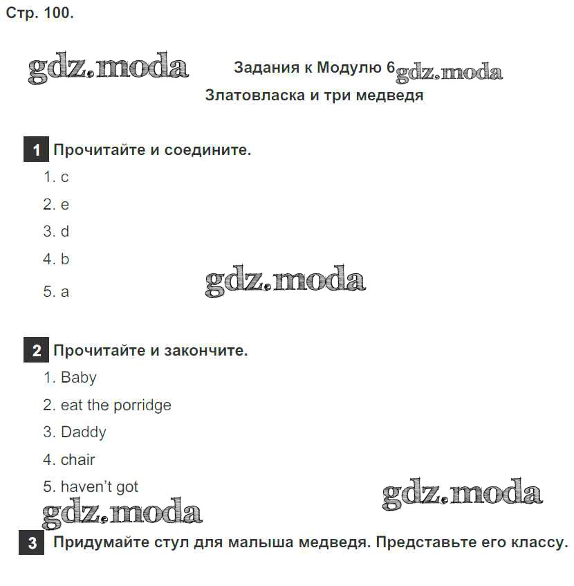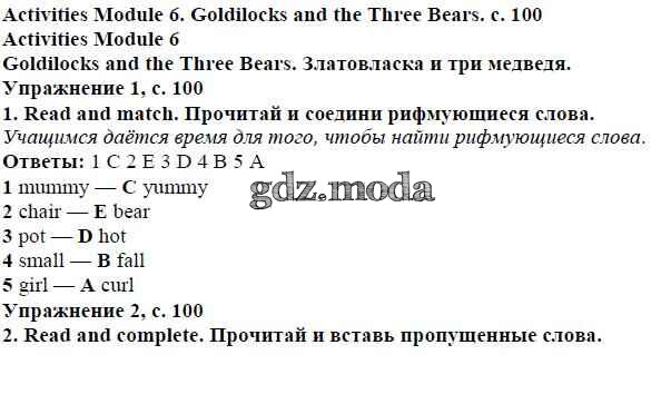 ОТВЕТ на задание № страница 100 Учебник по Английскому языку 4 класс Быкова Spotlight