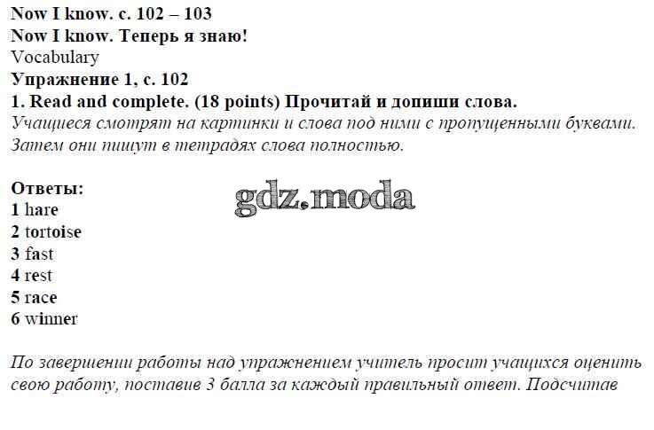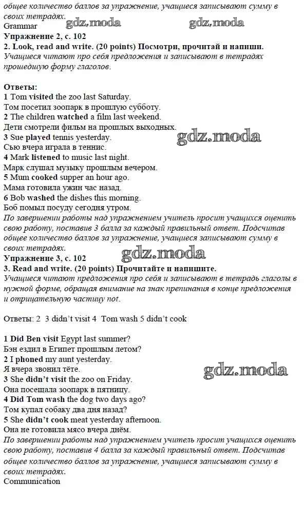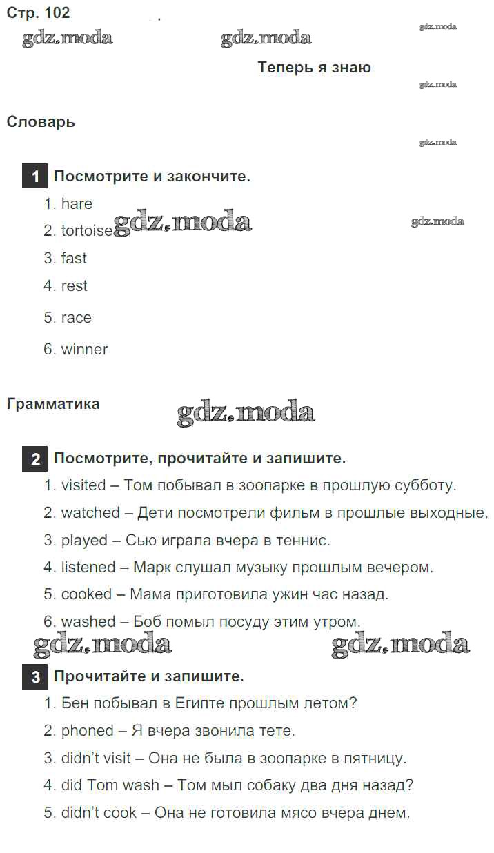 ОТВЕТ на задание № страница 102 Учебник по Английскому языку 4 класс Быкова Spotlight