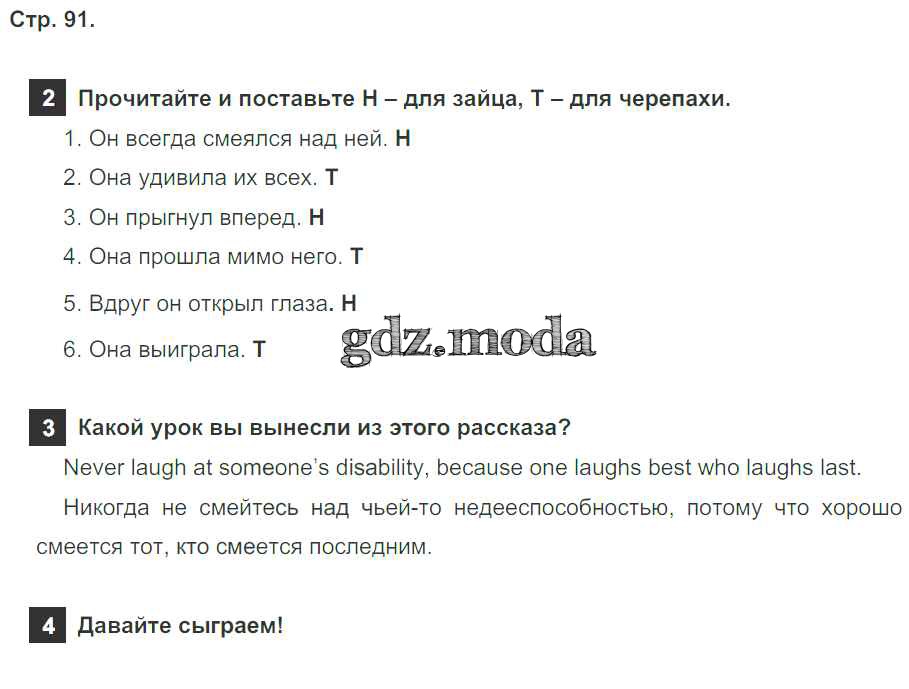 ОТВЕТ на задание № страница 91 Учебник по Английскому языку 4 класс Быкова Spotlight