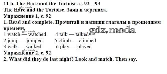 ОТВЕТ на задание № страница 92 Учебник по Английскому языку 4 класс Быкова Spotlight
