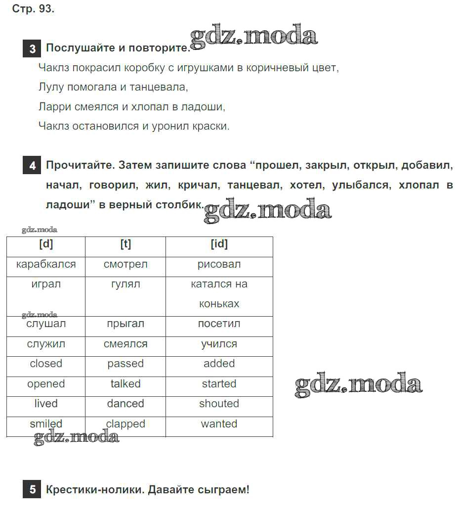ОТВЕТ на задание № страница 93 Учебник по Английскому языку 4 класс Быкова Spotlight