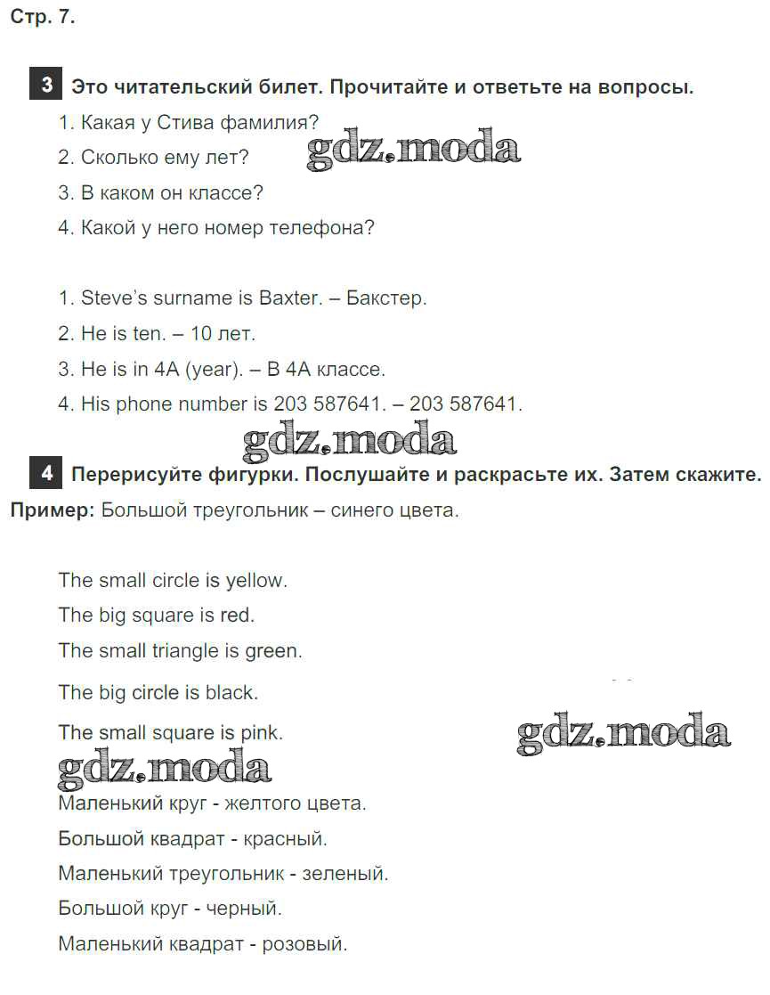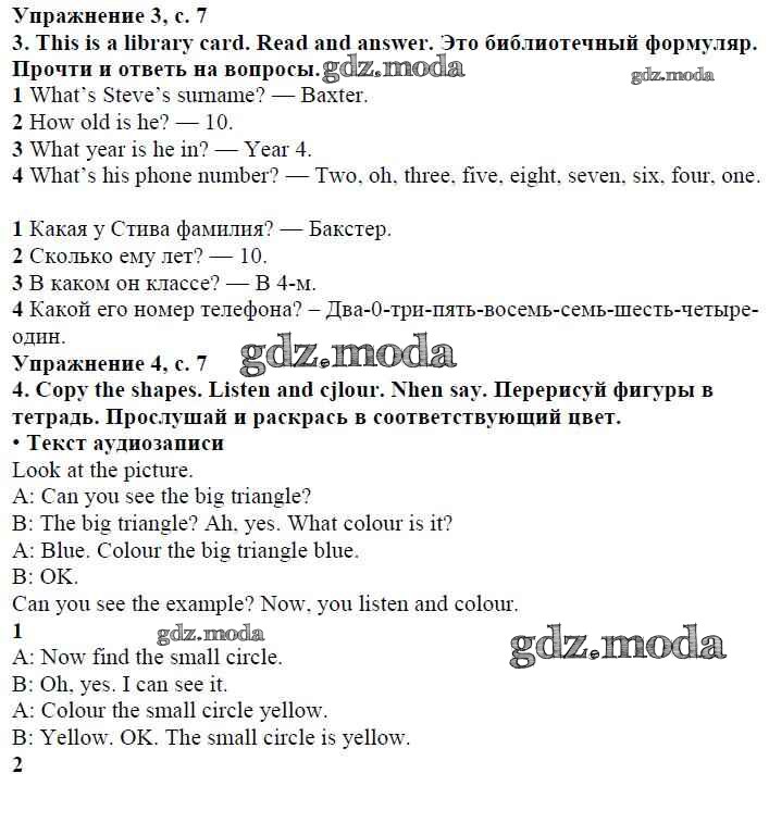 ОТВЕТ на задание № страница 7 Учебник по Английскому языку 4 класс Быкова Spotlight