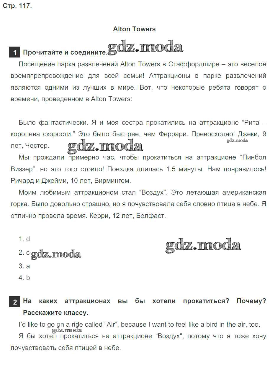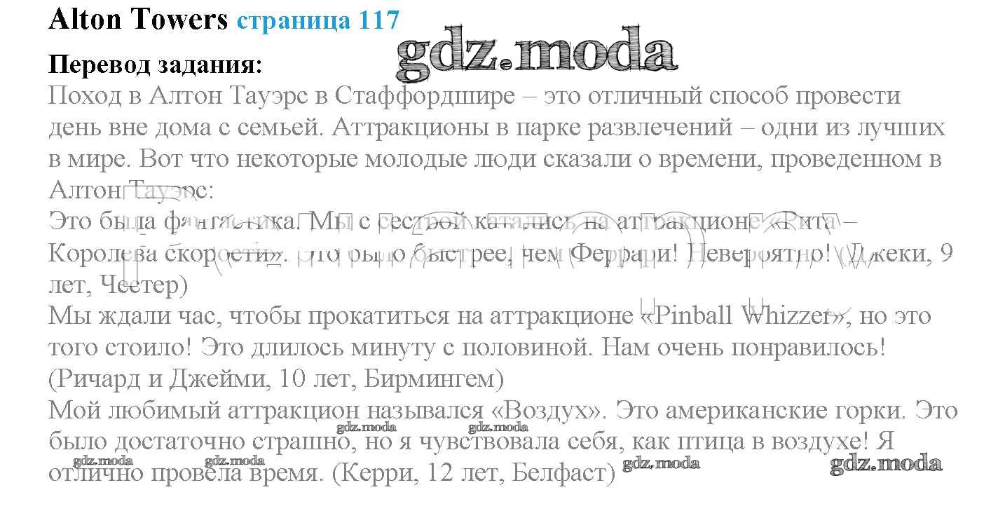 ОТВЕТ на задание № страница 117 Учебник по Английскому языку 4 класс Быкова Spotlight