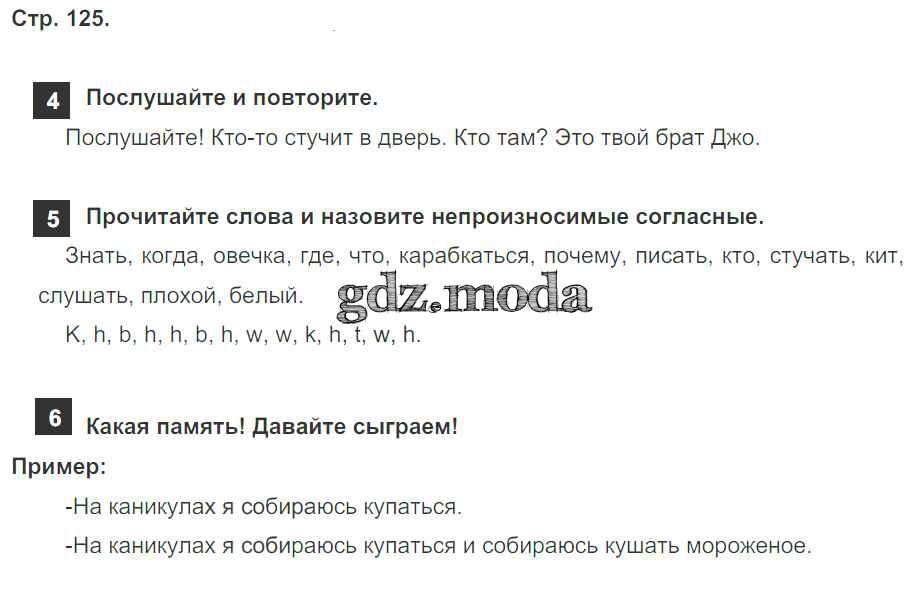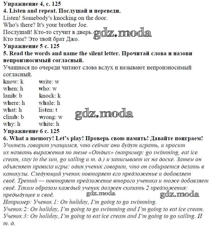 ОТВЕТ на задание № страница 125 Учебник по Английскому языку 4 класс Быкова Spotlight