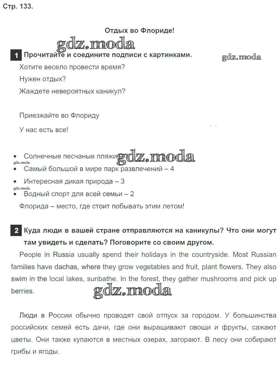 ОТВЕТ на задание № страница 133 Учебник по Английскому языку 4 класс Быкова Spotlight