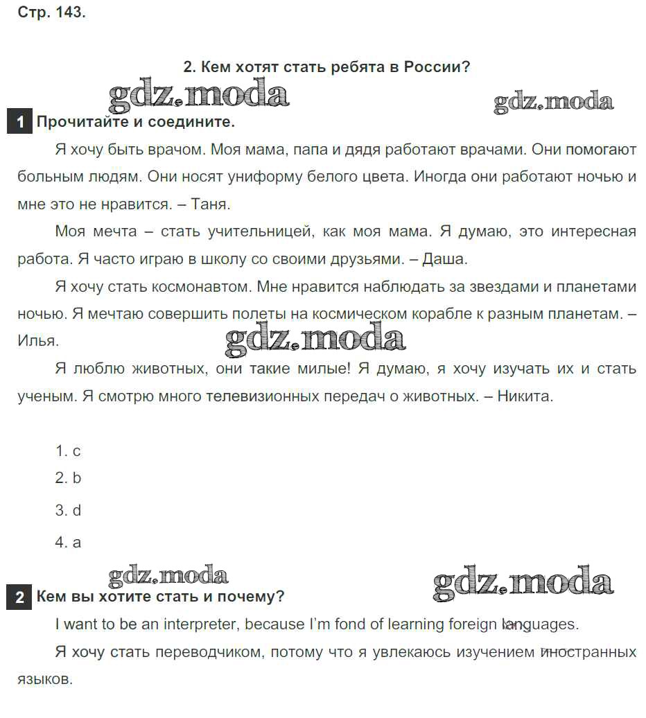 ОТВЕТ на задание № страница 143 Учебник по Английскому языку 4 класс Быкова Spotlight