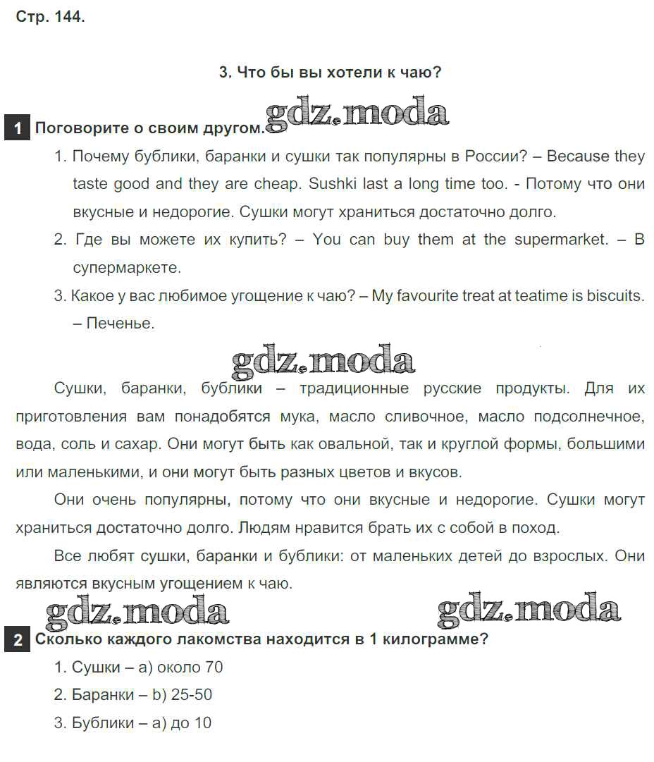 ОТВЕТ на задание № страница 144 Учебник по Английскому языку 4 класс Быкова Spotlight