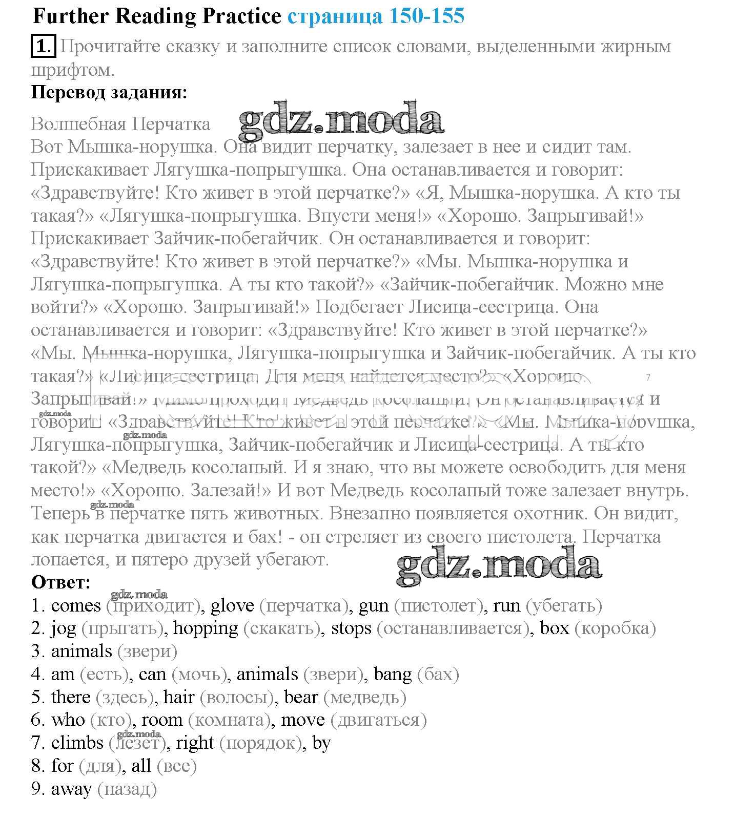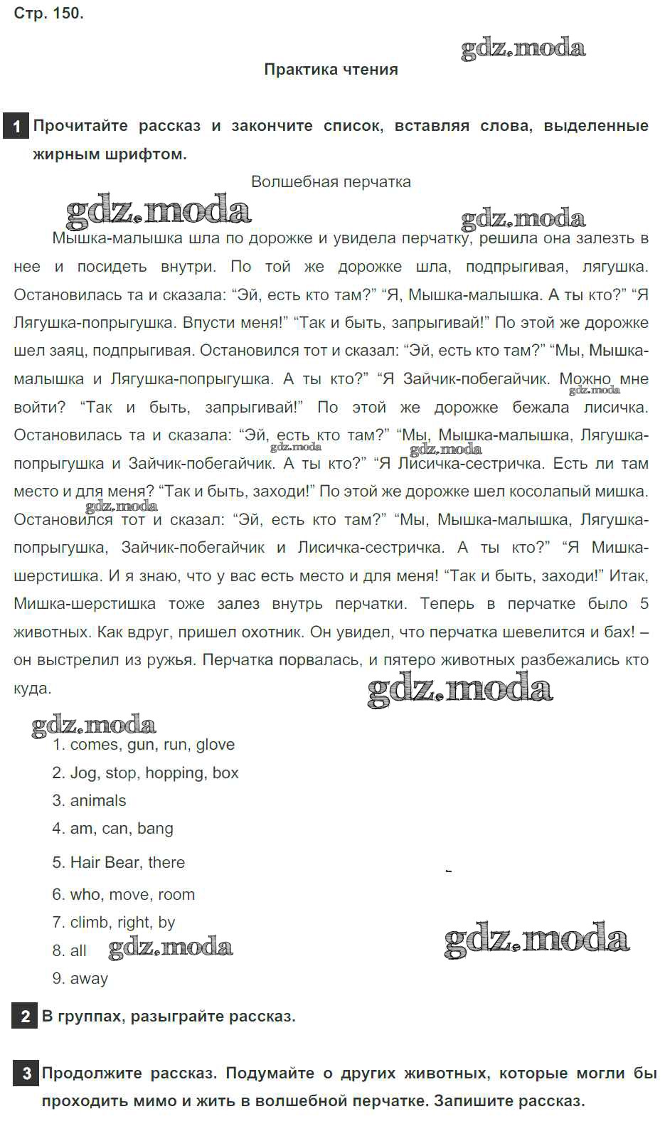 ОТВЕТ на задание № страница 150 Учебник по Английскому языку 4 класс Быкова Spotlight