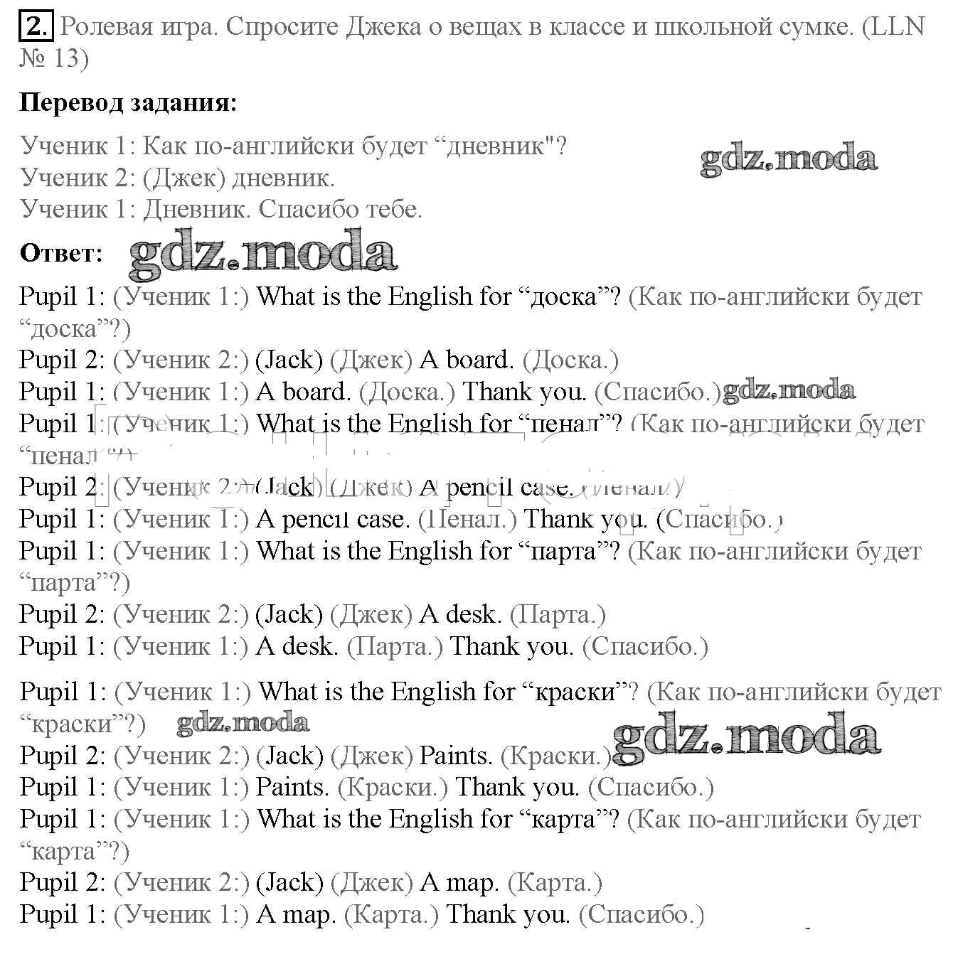 ОТВЕТ на задание № 2 Учебник по Английскому языку 4 класс Кузовлёв