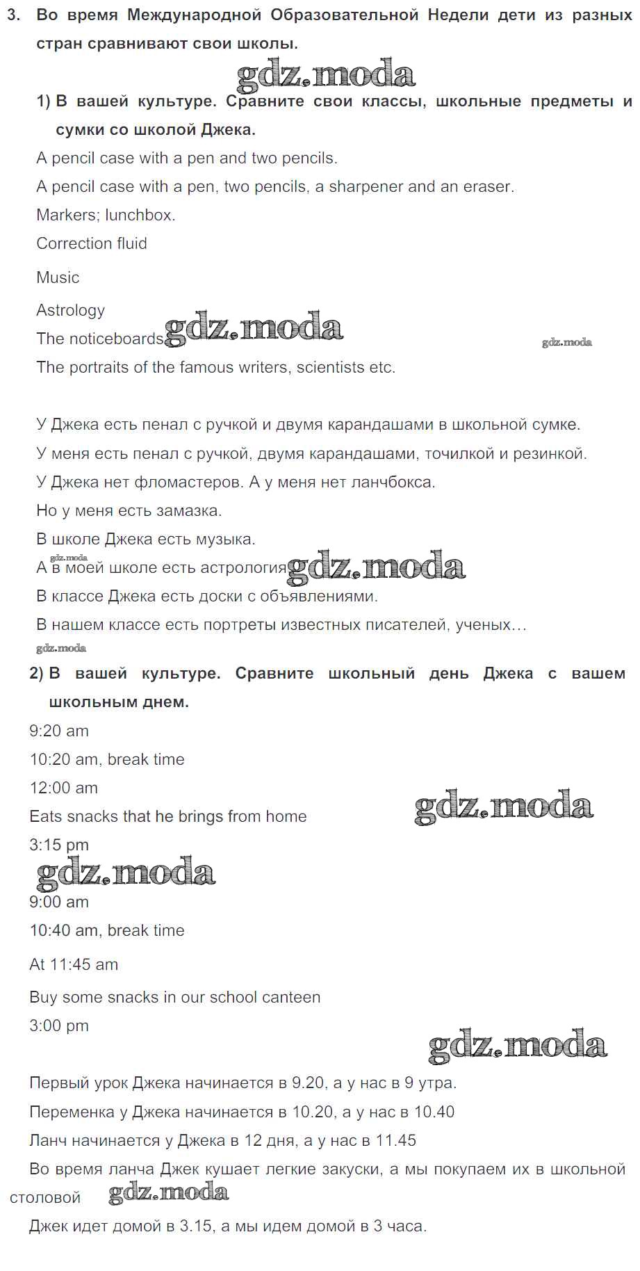 ГДЗ решение к заданию № 3 Английский язык 4 класс Кузовлёв В.П. Просвещение 2015 Часть 1, Часть 2 ФГОС бесплатно на гдз.мода!