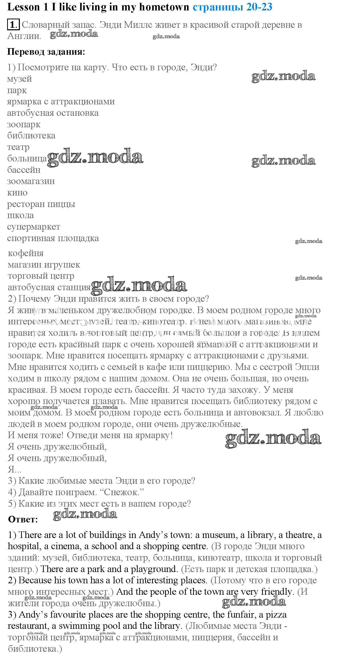 ОТВЕТ на задание № 1 Учебник по Английскому языку 4 класс Кузовлёв