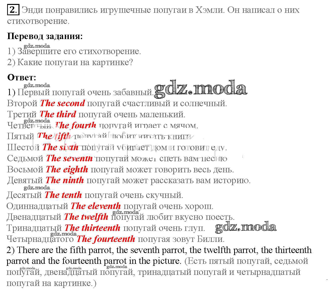 ГДЗ решение к заданию № 2 Английский язык 4 класс Кузовлёв В.П. Просвещение 2015 Часть 1, Часть 2 ФГОС бесплатно на гдз.мода!