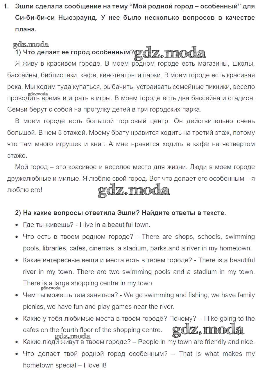 ОТВЕТ на задание № 1 Учебник по Английскому языку 4 класс Кузовлёв