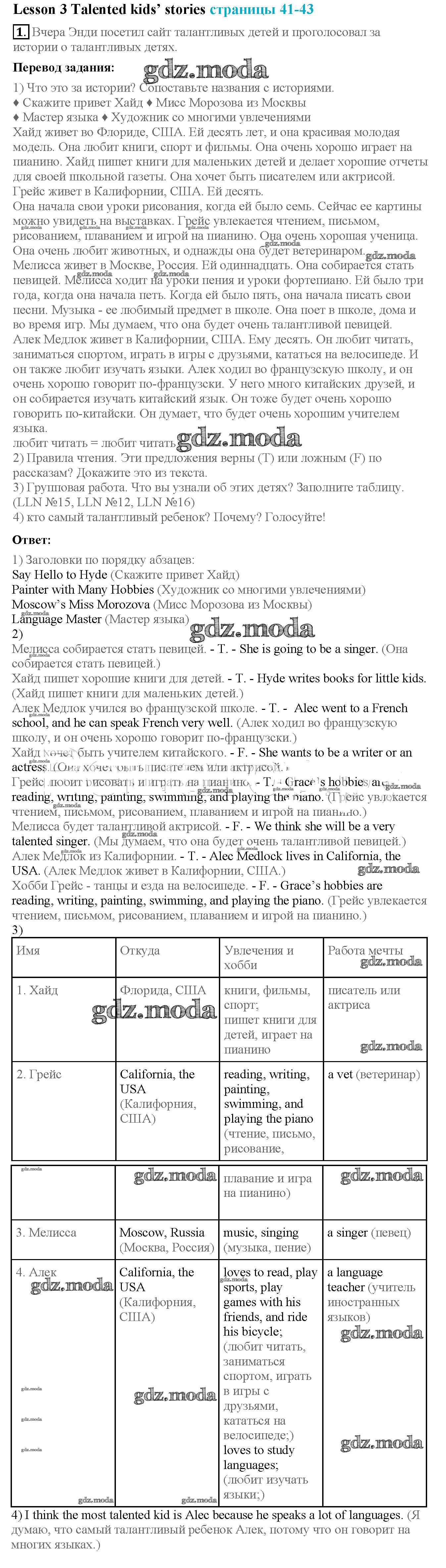 ОТВЕТ на задание № 1 Учебник по Английскому языку 4 класс Кузовлёв