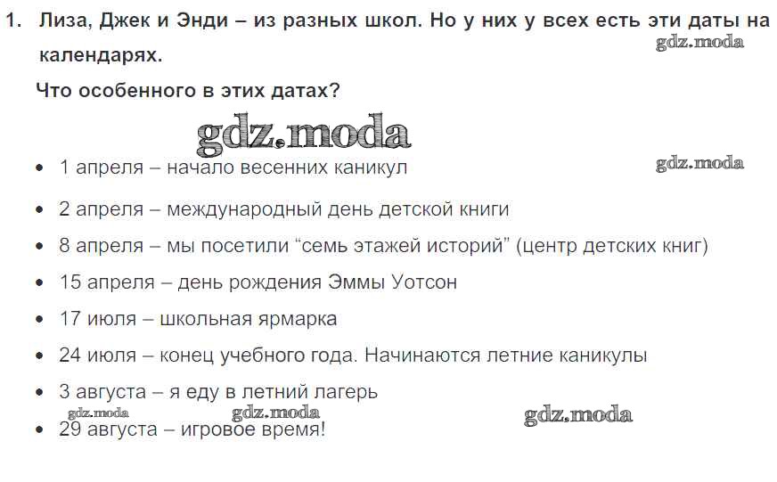 ГДЗ решение к заданию № 1 Английский язык 4 класс Кузовлёв В.П. Просвещение 2015 Часть 1, Часть 2 ФГОС бесплатно на гдз.мода!
