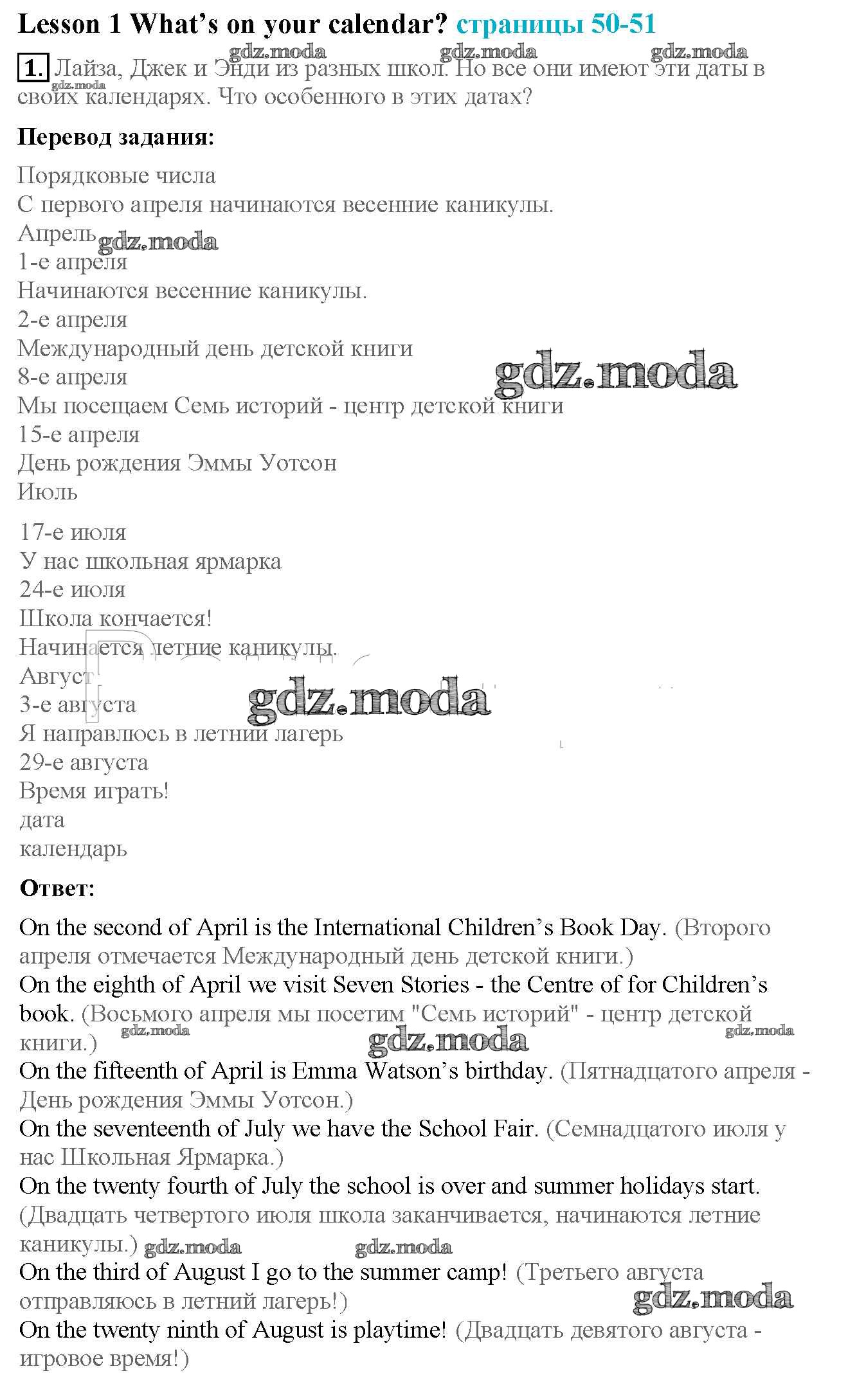 ОТВЕТ на задание № 1 Учебник по Английскому языку 4 класс Кузовлёв