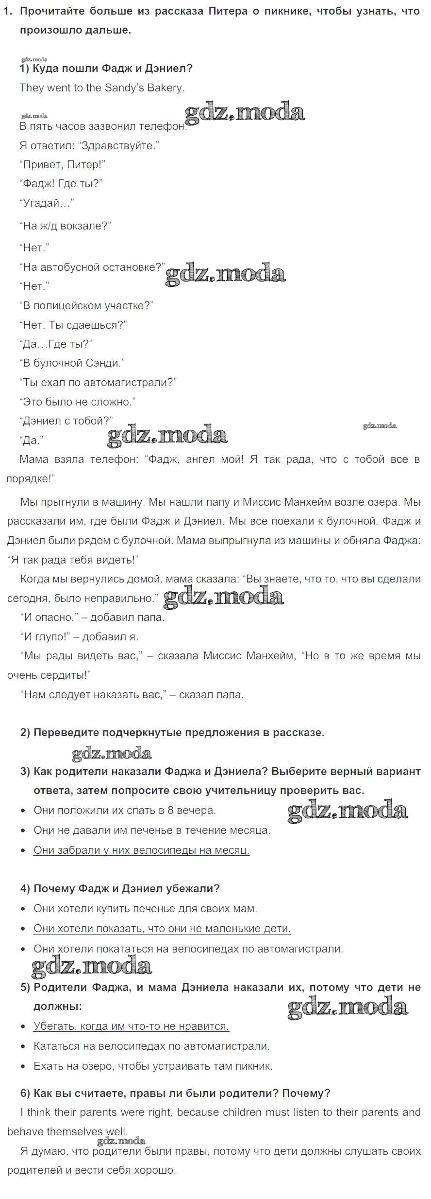 ГДЗ решение к заданию № 1 Английский язык 4 класс Кузовлёв В.П. Просвещение 2015 Часть 1, Часть 2 ФГОС бесплатно на гдз.мода!