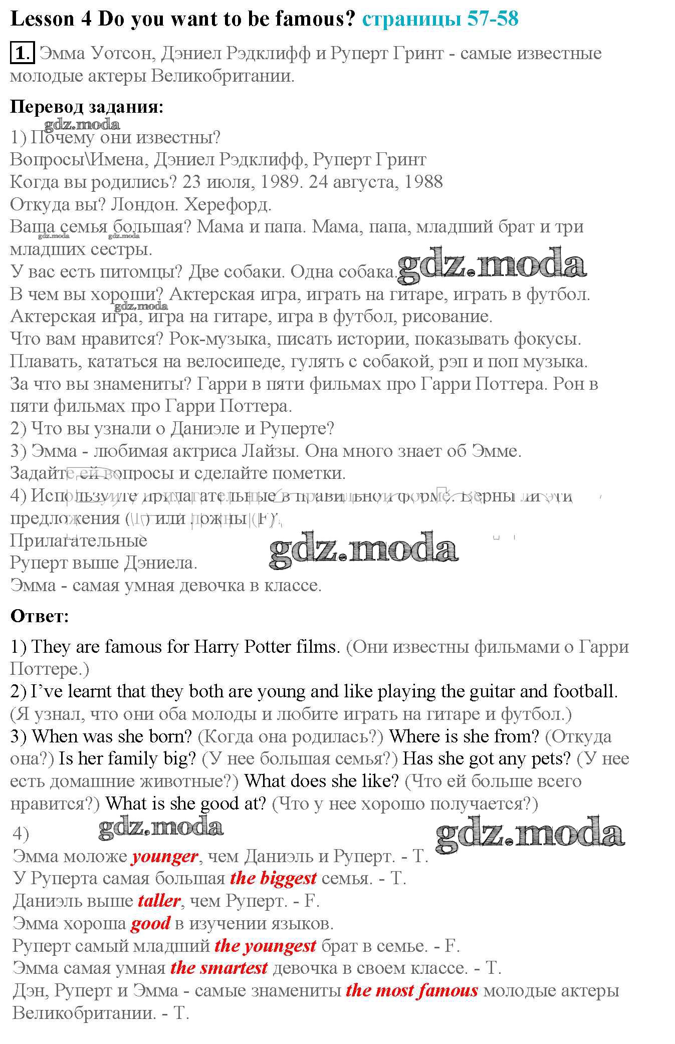 ОТВЕТ на задание № 1 Учебник по Английскому языку 4 класс Кузовлёв