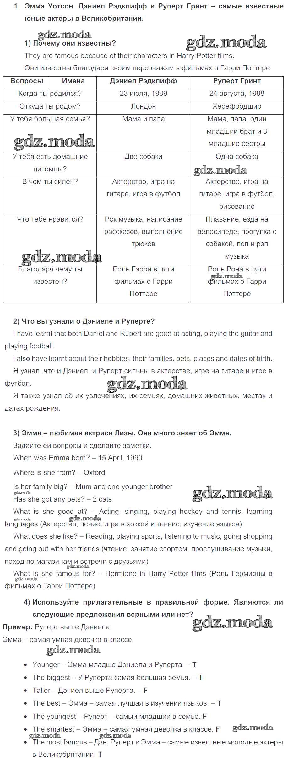 ГДЗ решение к заданию № 1 Английский язык 4 класс Кузовлёв В.П. Просвещение 2015 Часть 1, Часть 2 ФГОС бесплатно на гдз.мода!