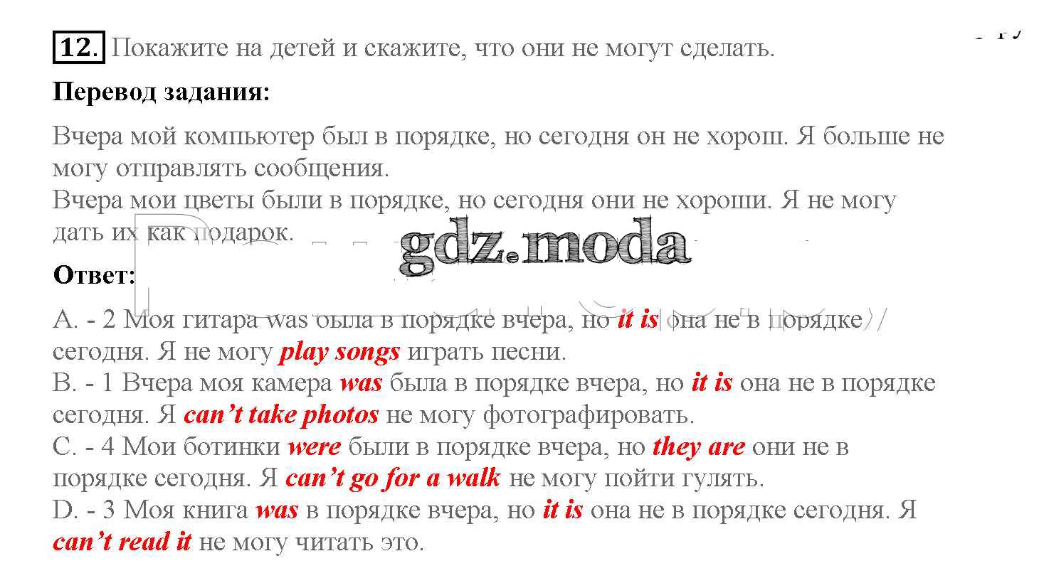 ГДЗ решение к заданию № 12 Английский язык 4 класс Вербицкая Forward Вентана-граф 2018 Часть 1, Часть 2 ФГОС бесплатно на гдз.мода!