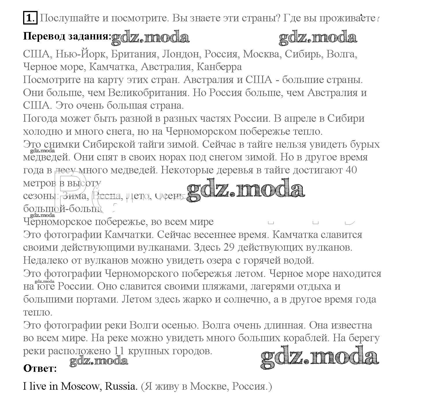 ОТВЕТ на задание № 1 Учебник по Английскому языку 4 класс Вербицкая Forward
