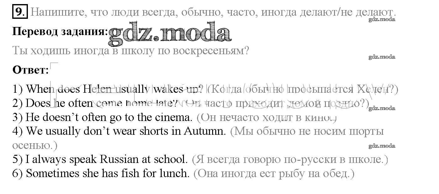 ГДЗ решение к заданию № 9 Английский язык 4 класс рабочая тетрадь Верещагина Просвещение 2016 Углубленный уровень ФГОС бесплатно на гдз.мода!