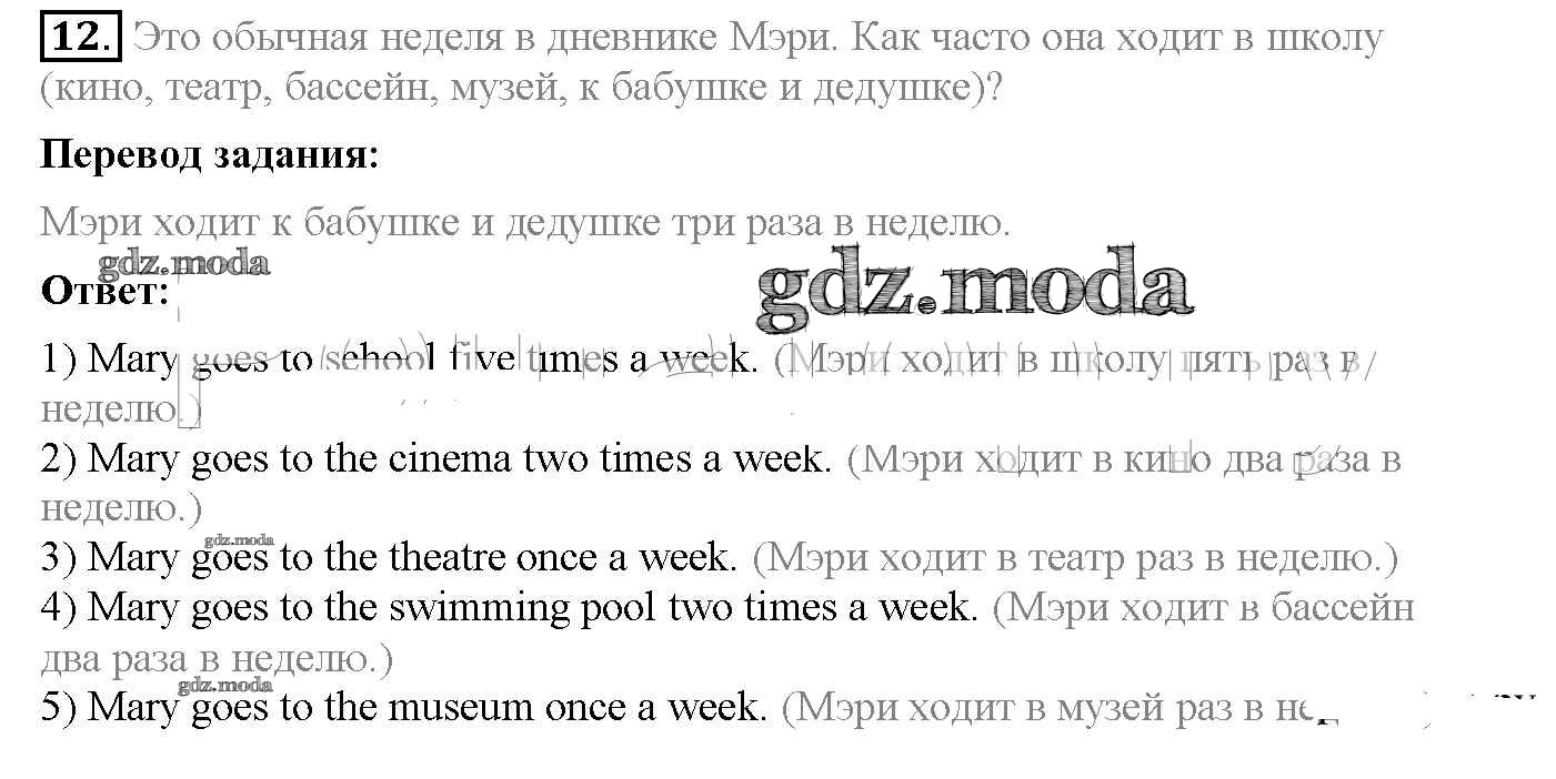 ГДЗ решение к заданию № 12 Английский язык 4 класс рабочая тетрадь Верещагина Просвещение 2016 Углубленный уровень ФГОС бесплатно на гдз.мода!