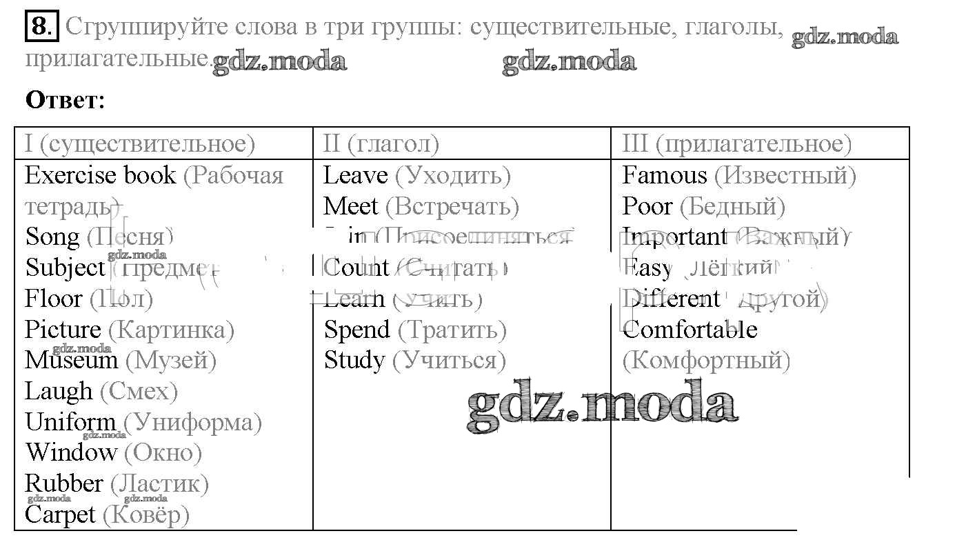 ГДЗ решение к заданию № 8 Английский язык 4 класс рабочая тетрадь Верещагина Просвещение 2016 Углубленный уровень ФГОС бесплатно на гдз.мода!