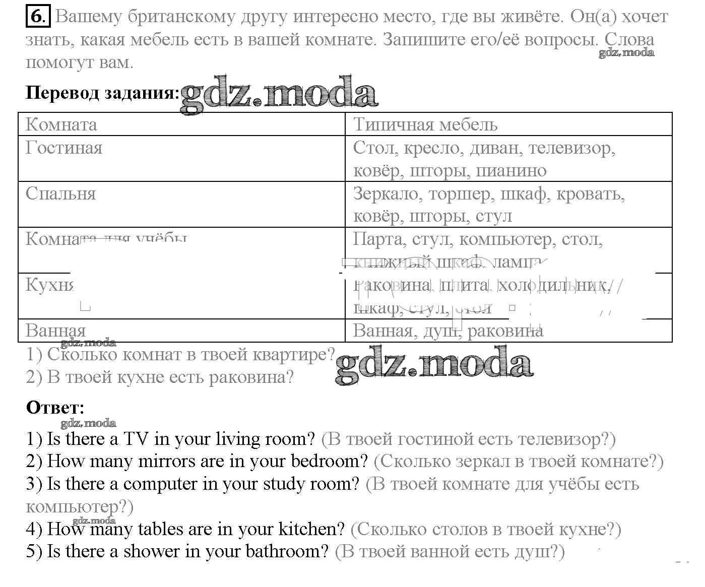 ОТВЕТ на задание № 6 Рабочая тетрадь по Английскому языку 4 класс Верещагина Углубленный уровень