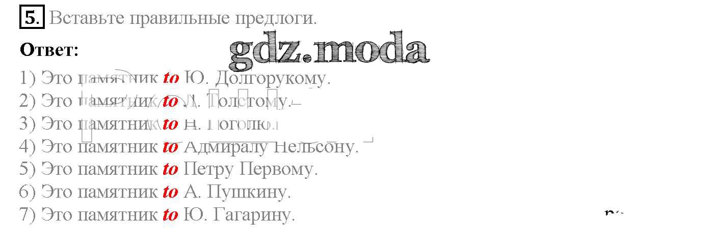 ГДЗ решение к заданию № 5 Английский язык 4 класс рабочая тетрадь Верещагина Просвещение 2016 Углубленный уровень ФГОС бесплатно на гдз.мода!