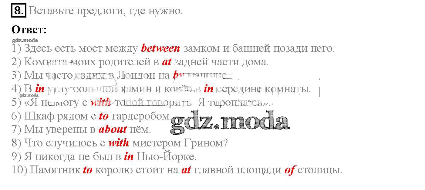 ГДЗ решение к заданию № 8 Английский язык 4 класс рабочая тетрадь Верещагина Просвещение 2016 Углубленный уровень ФГОС бесплатно на гдз.мода!