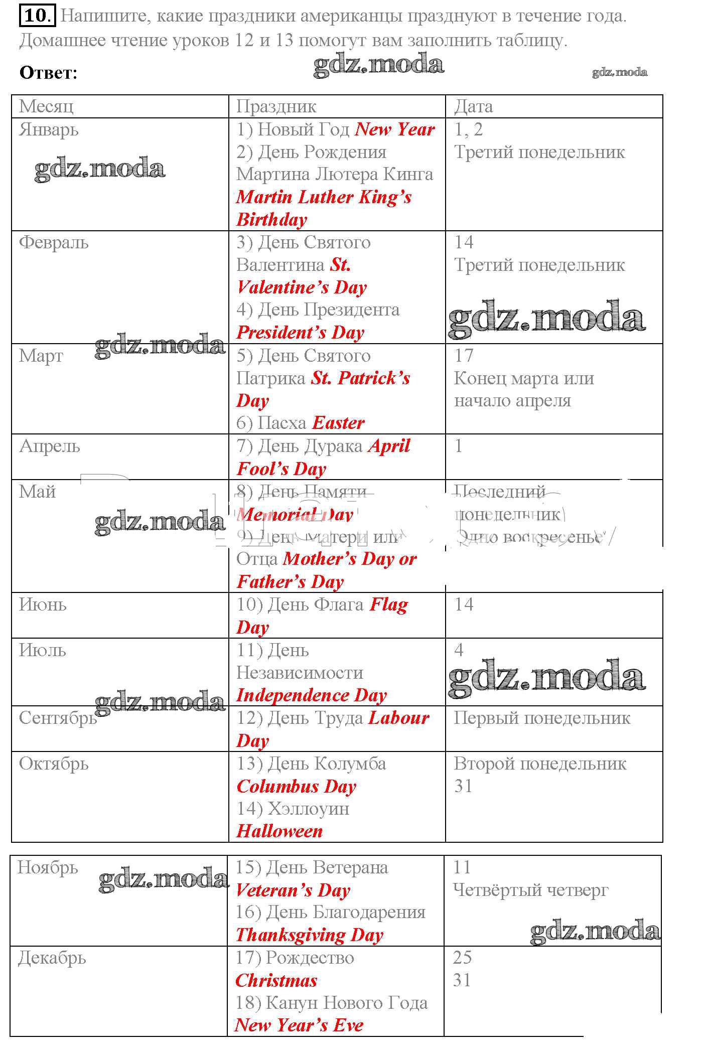 ГДЗ решение к заданию № 10 Английский язык 4 класс рабочая тетрадь Верещагина Просвещение 2016 Углубленный уровень ФГОС бесплатно на гдз.мода!