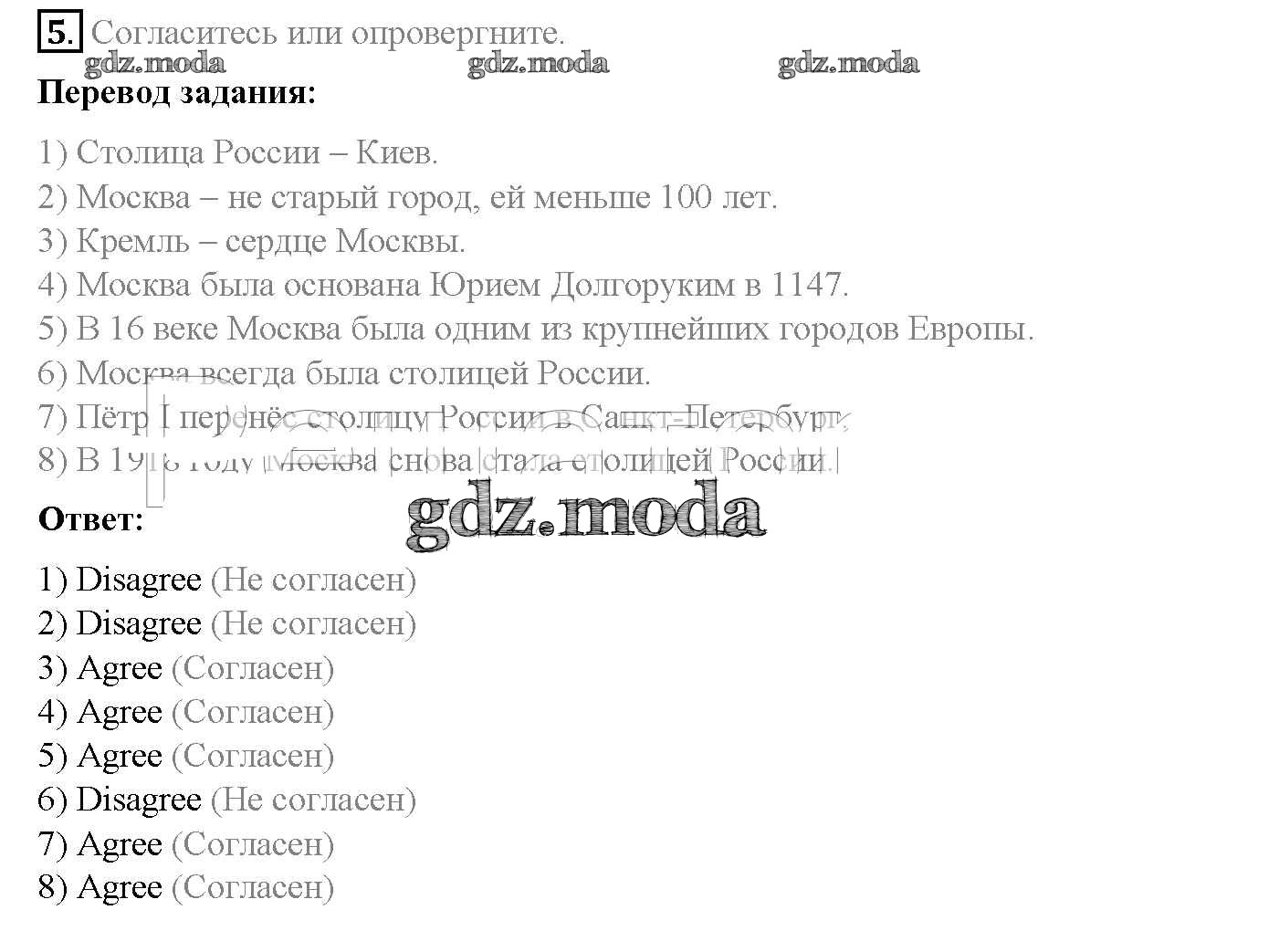 ГДЗ решение к заданию № 5 Английский язык 4 класс рабочая тетрадь Верещагина Просвещение 2016 Углубленный уровень ФГОС бесплатно на гдз.мода!