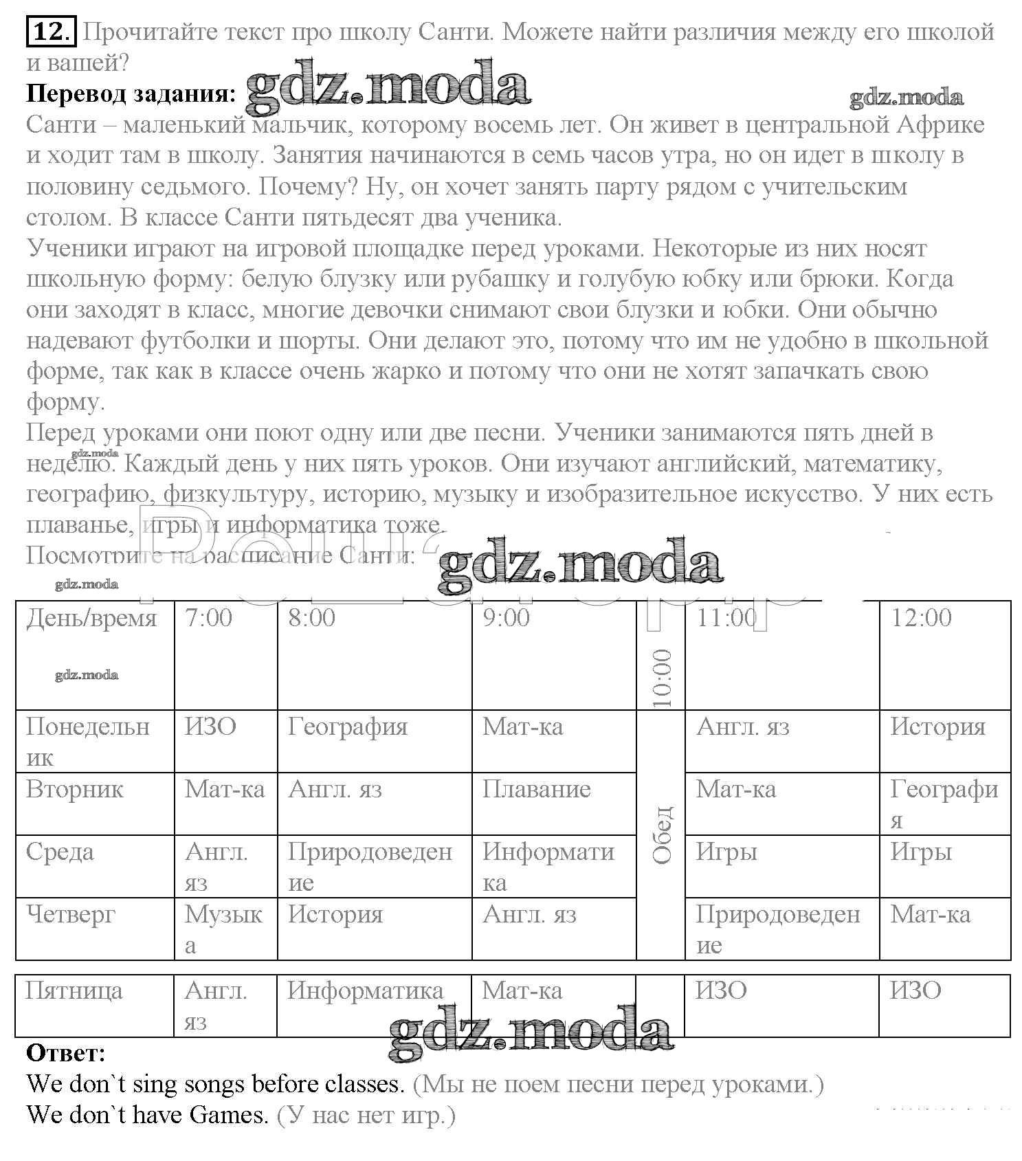 ГДЗ решение к заданию № 12 Английский язык 4 класс Верещагина Просвещение 2015 Часть 1, Часть 2 Углубленный уровень ФГОС бесплатно на гдз.мода!