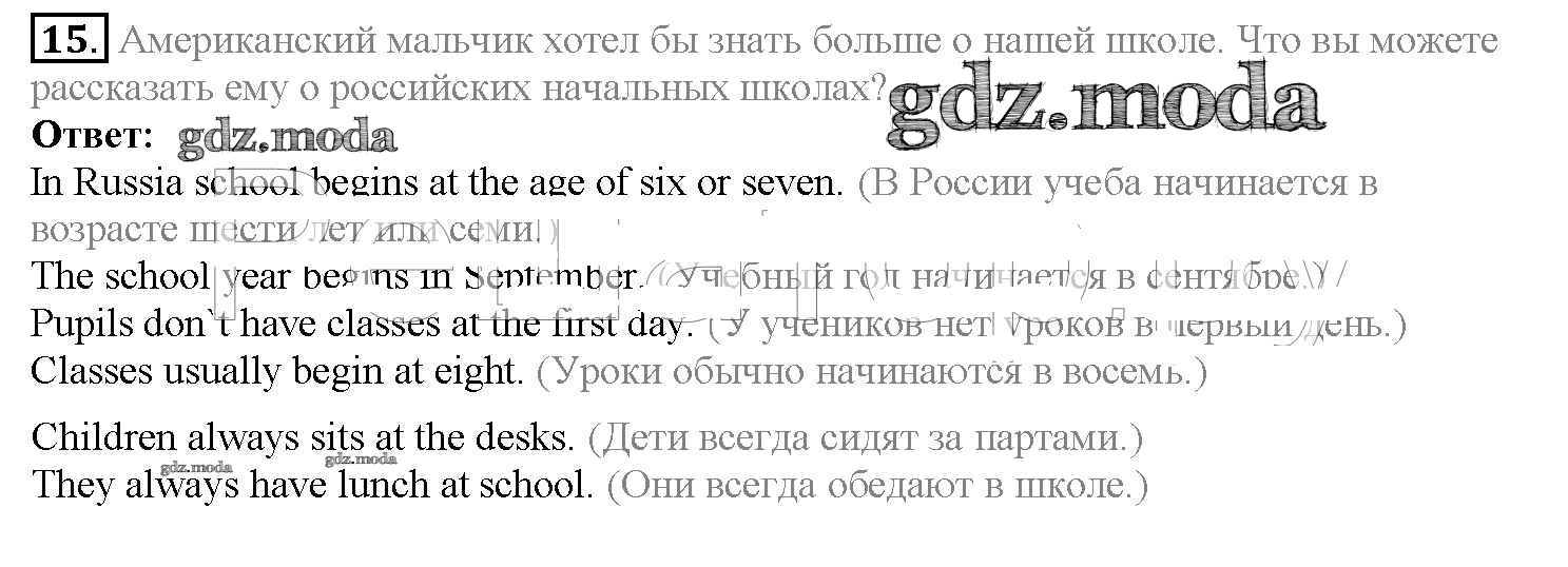 ГДЗ решение к заданию № 15 Английский язык 4 класс Верещагина Просвещение 2015 Часть 1, Часть 2 Углубленный уровень ФГОС бесплатно на гдз.мода!