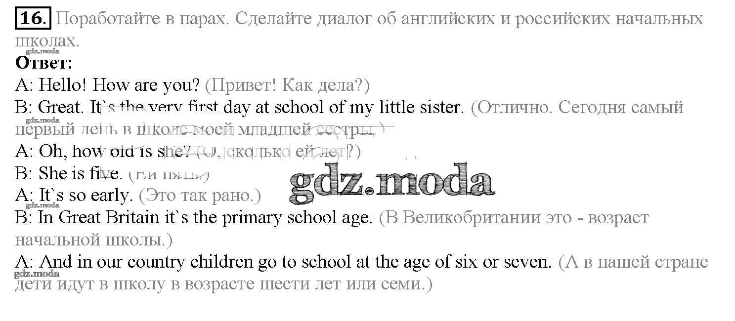 ГДЗ решение к заданию № 16 Английский язык 4 класс Верещагина Просвещение 2015 Часть 1, Часть 2 Углубленный уровень ФГОС бесплатно на гдз.мода!