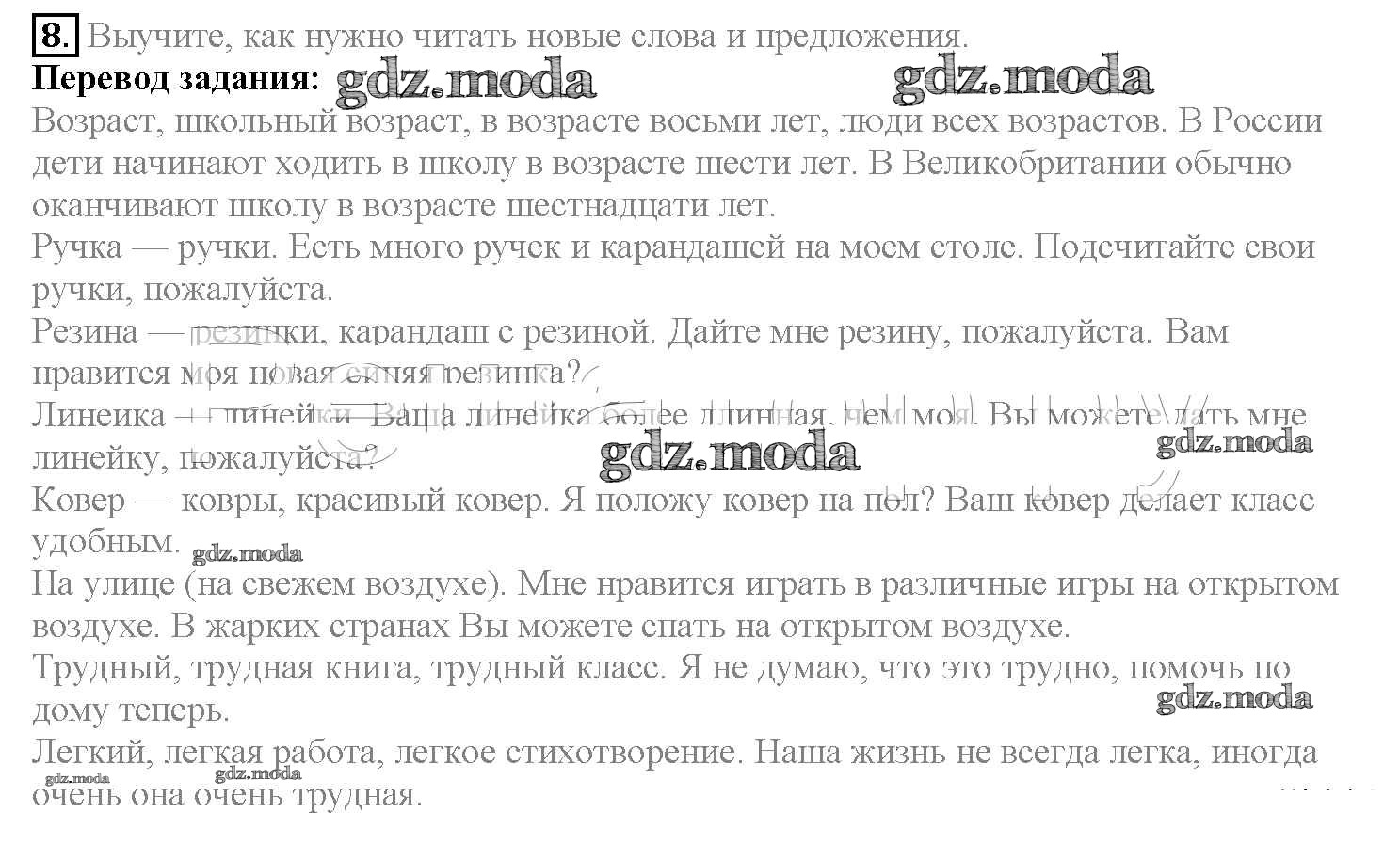 ГДЗ решение к заданию № 8 Английский язык 4 класс Верещагина Просвещение 2015 Часть 1, Часть 2 Углубленный уровень ФГОС бесплатно на гдз.мода!