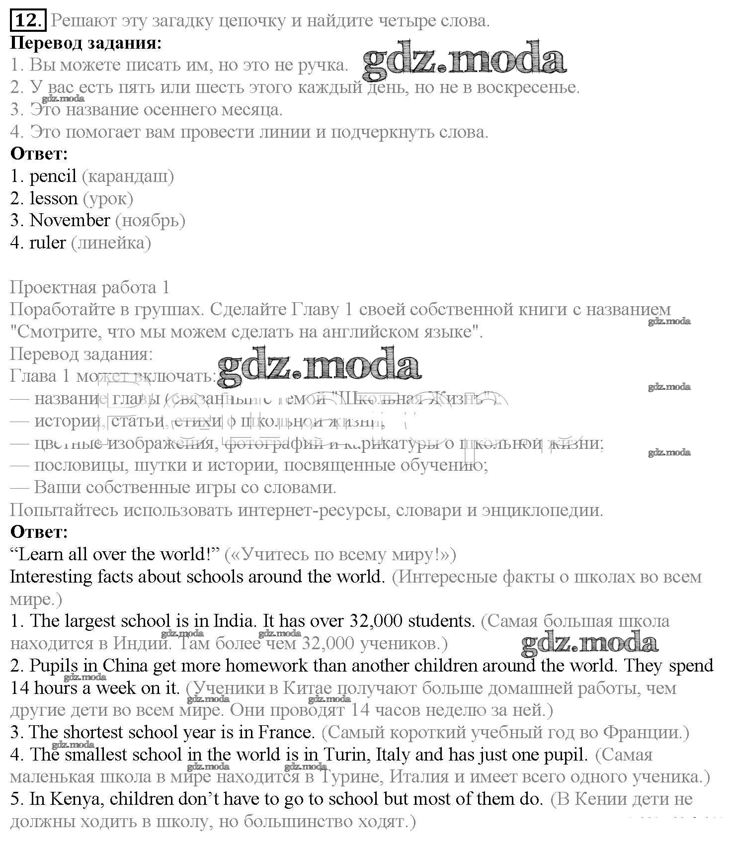 ГДЗ решение к заданию № 12 Английский язык 4 класс Верещагина Просвещение 2015 Часть 1, Часть 2 Углубленный уровень ФГОС бесплатно на гдз.мода!