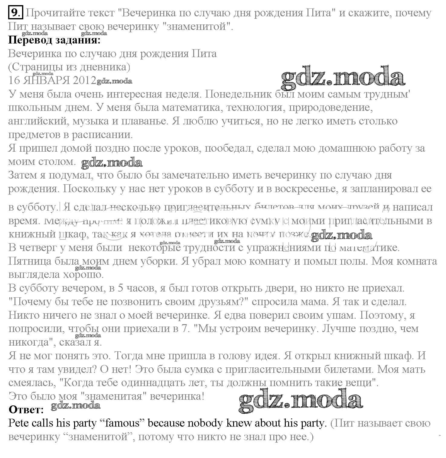 ГДЗ решение к заданию № 9 Английский язык 4 класс Верещагина Просвещение 2015 Часть 1, Часть 2 Углубленный уровень ФГОС бесплатно на гдз.мода!