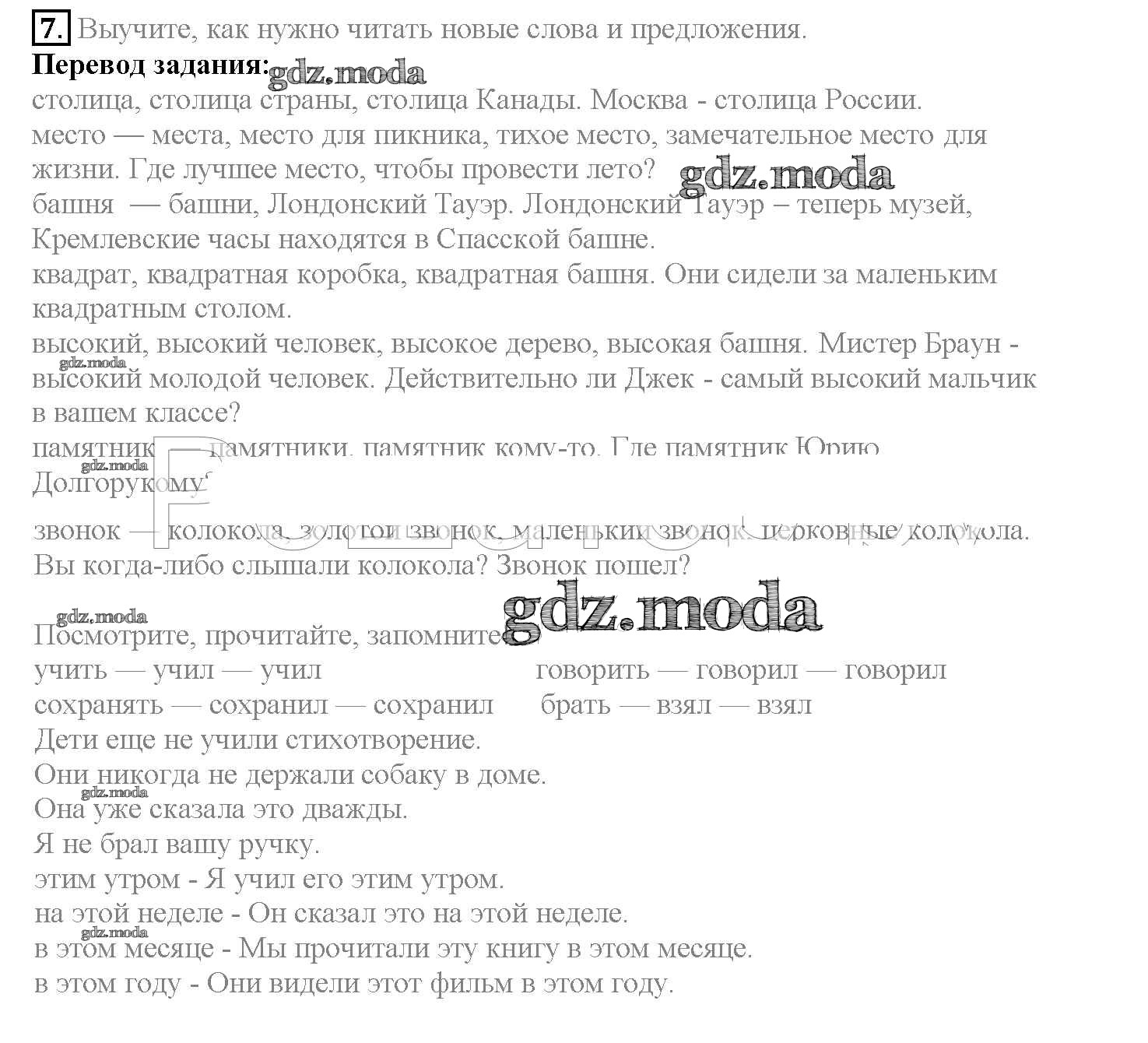 ГДЗ решение к заданию № 7 Английский язык 4 класс Верещагина Просвещение 2015 Часть 1, Часть 2 Углубленный уровень ФГОС бесплатно на гдз.мода!