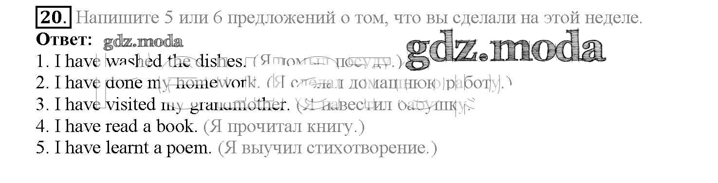 ГДЗ решение к заданию № 20 Английский язык 4 класс Верещагина Просвещение 2015 Часть 1, Часть 2 Углубленный уровень ФГОС бесплатно на гдз.мода!