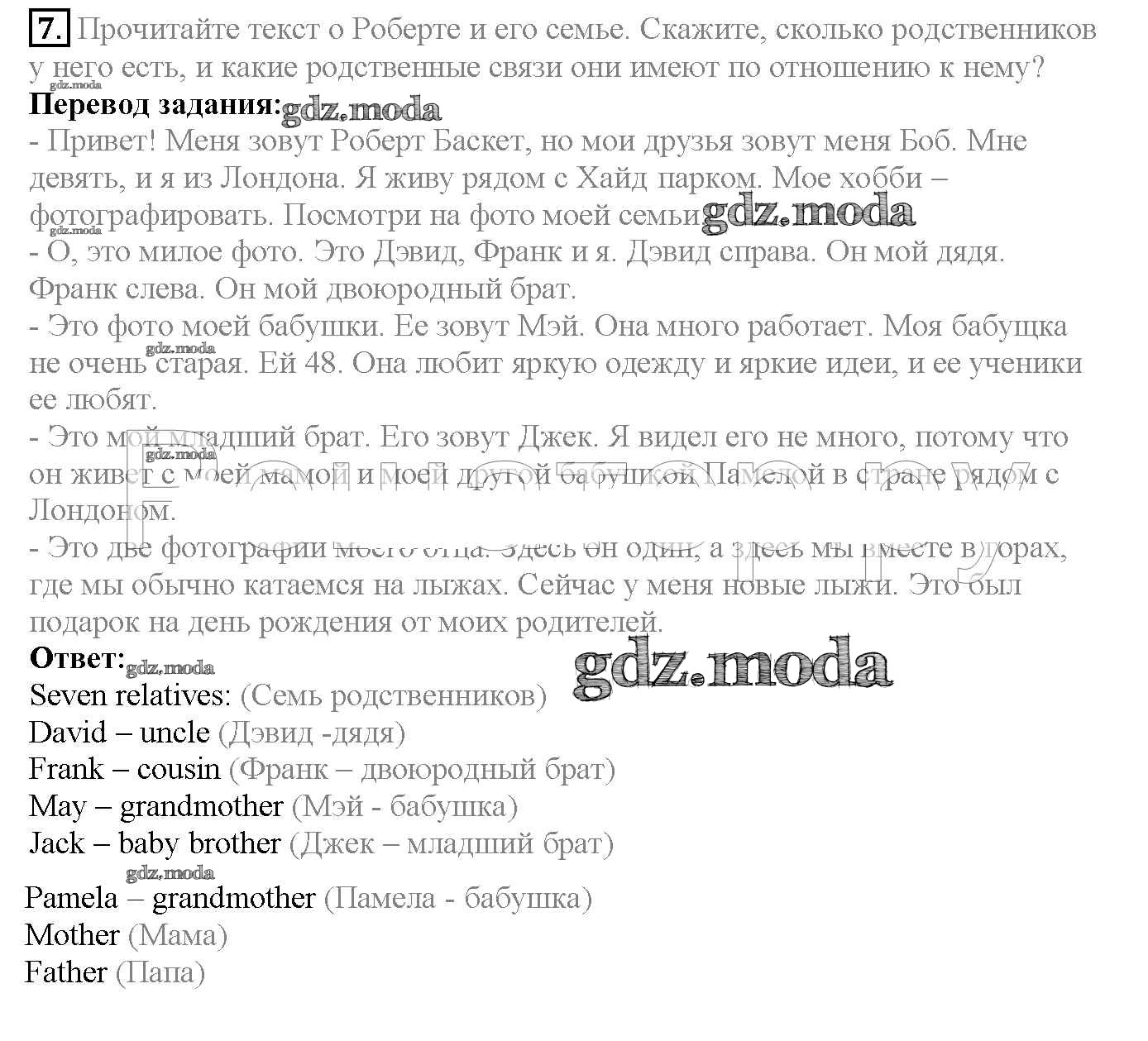 ГДЗ решение к заданию № 7 Английский язык 4 класс Верещагина Просвещение 2015 Часть 1, Часть 2 Углубленный уровень ФГОС бесплатно на гдз.мода!