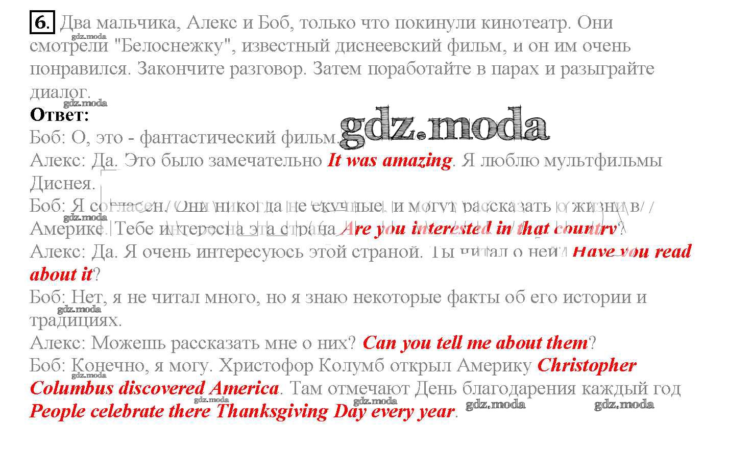 ГДЗ решение к заданию № 6 Английский язык 4 класс Верещагина Просвещение 2015 Часть 1, Часть 2 Углубленный уровень ФГОС бесплатно на гдз.мода!