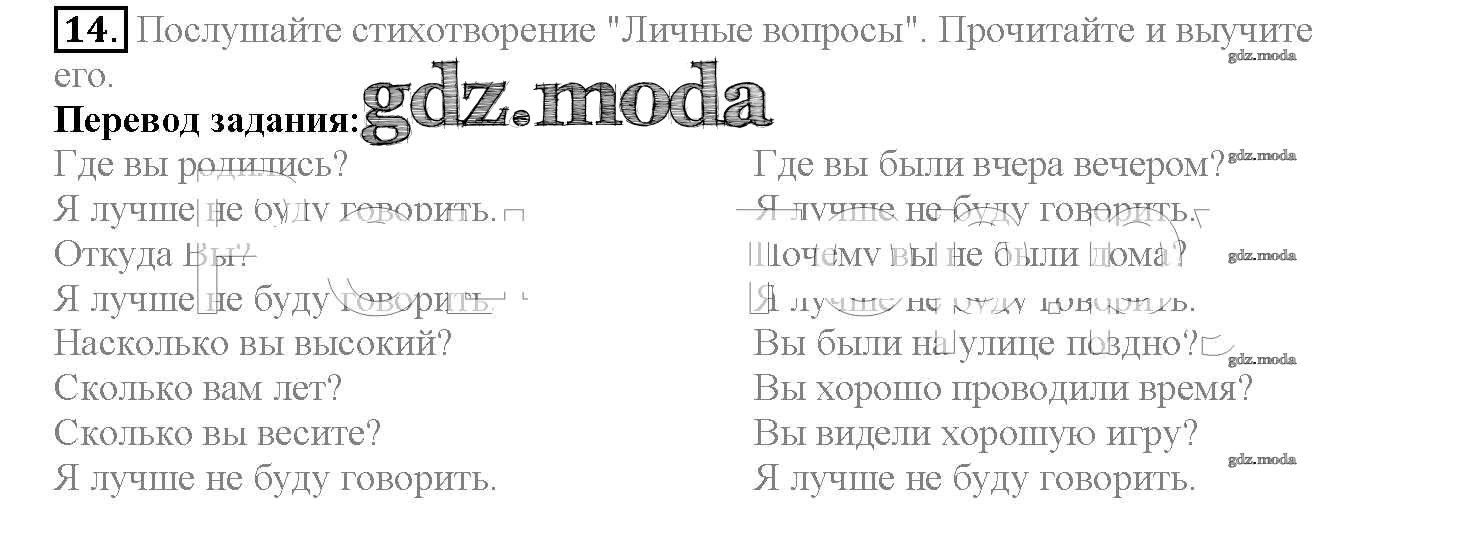 ГДЗ решение к заданию № 14 Английский язык 4 класс Верещагина Просвещение 2015 Часть 1, Часть 2 Углубленный уровень ФГОС бесплатно на гдз.мода!