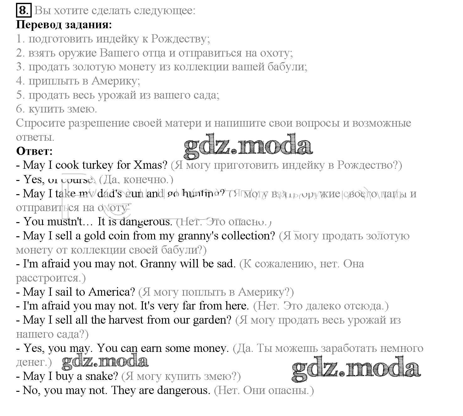 ГДЗ решение к заданию № 8 Английский язык 4 класс Верещагина Просвещение 2015 Часть 1, Часть 2 Углубленный уровень ФГОС бесплатно на гдз.мода!