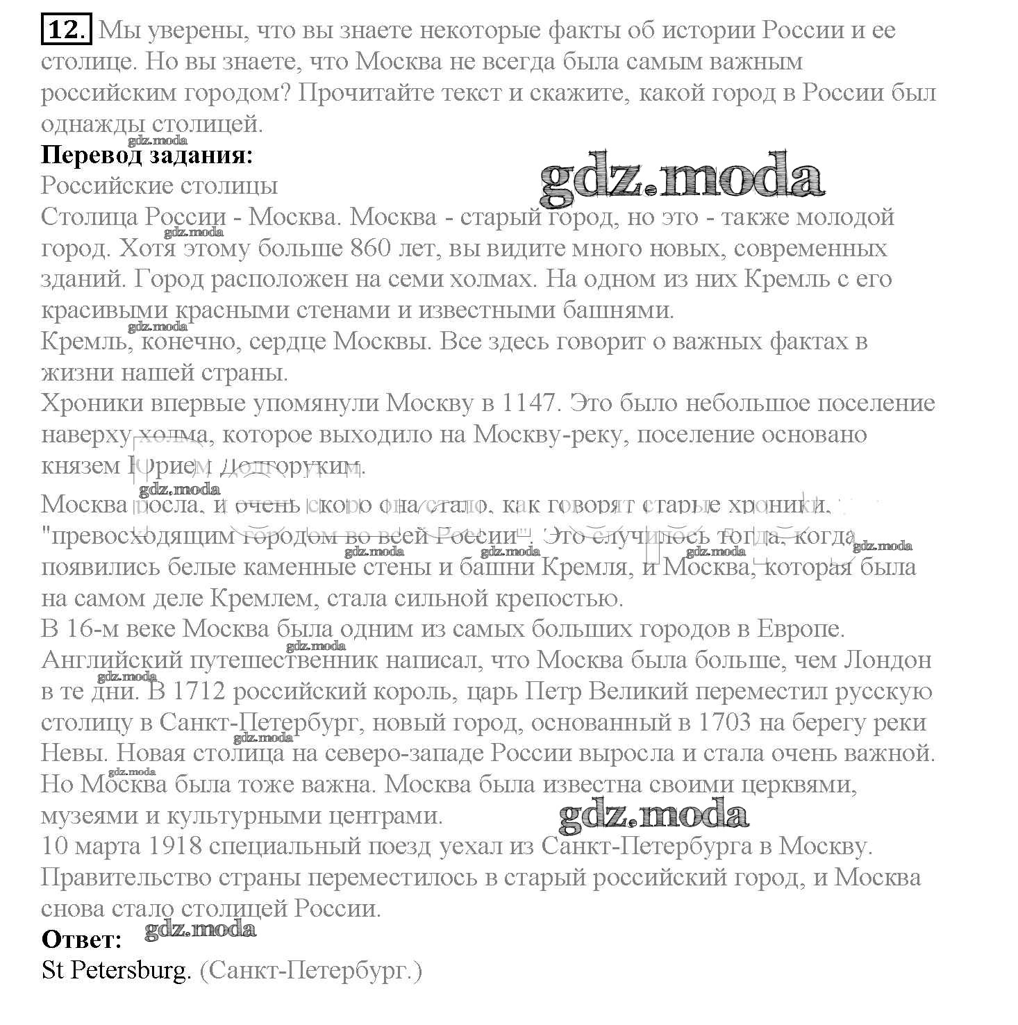 ГДЗ решение к заданию № 12 Английский язык 4 класс Верещагина Просвещение 2015 Часть 1, Часть 2 Углубленный уровень ФГОС бесплатно на гдз.мода!