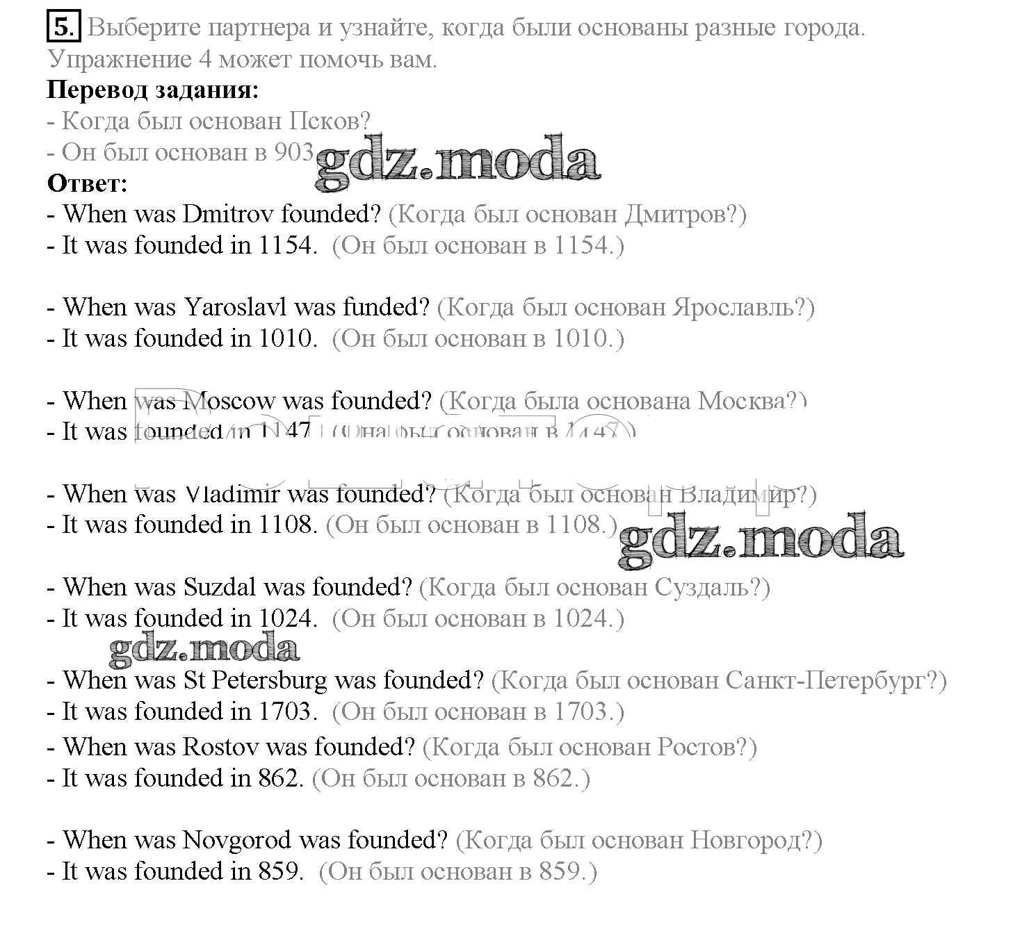 ГДЗ решение к заданию № 5 Английский язык 4 класс Верещагина Просвещение 2015 Часть 1, Часть 2 Углубленный уровень ФГОС бесплатно на гдз.мода!