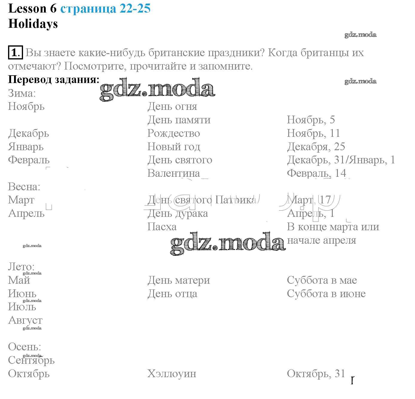 ГДЗ решение к заданию № 1 Английский язык 4 класс Верещагина Просвещение 2015 Часть 1, Часть 2 Углубленный уровень ФГОС бесплатно на гдз.мода!