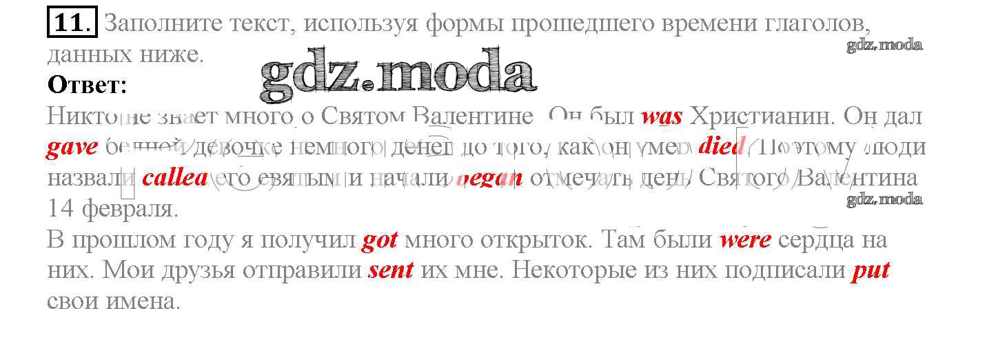 ГДЗ решение к заданию № 11 Английский язык 4 класс Верещагина Просвещение 2015 Часть 1, Часть 2 Углубленный уровень ФГОС бесплатно на гдз.мода!